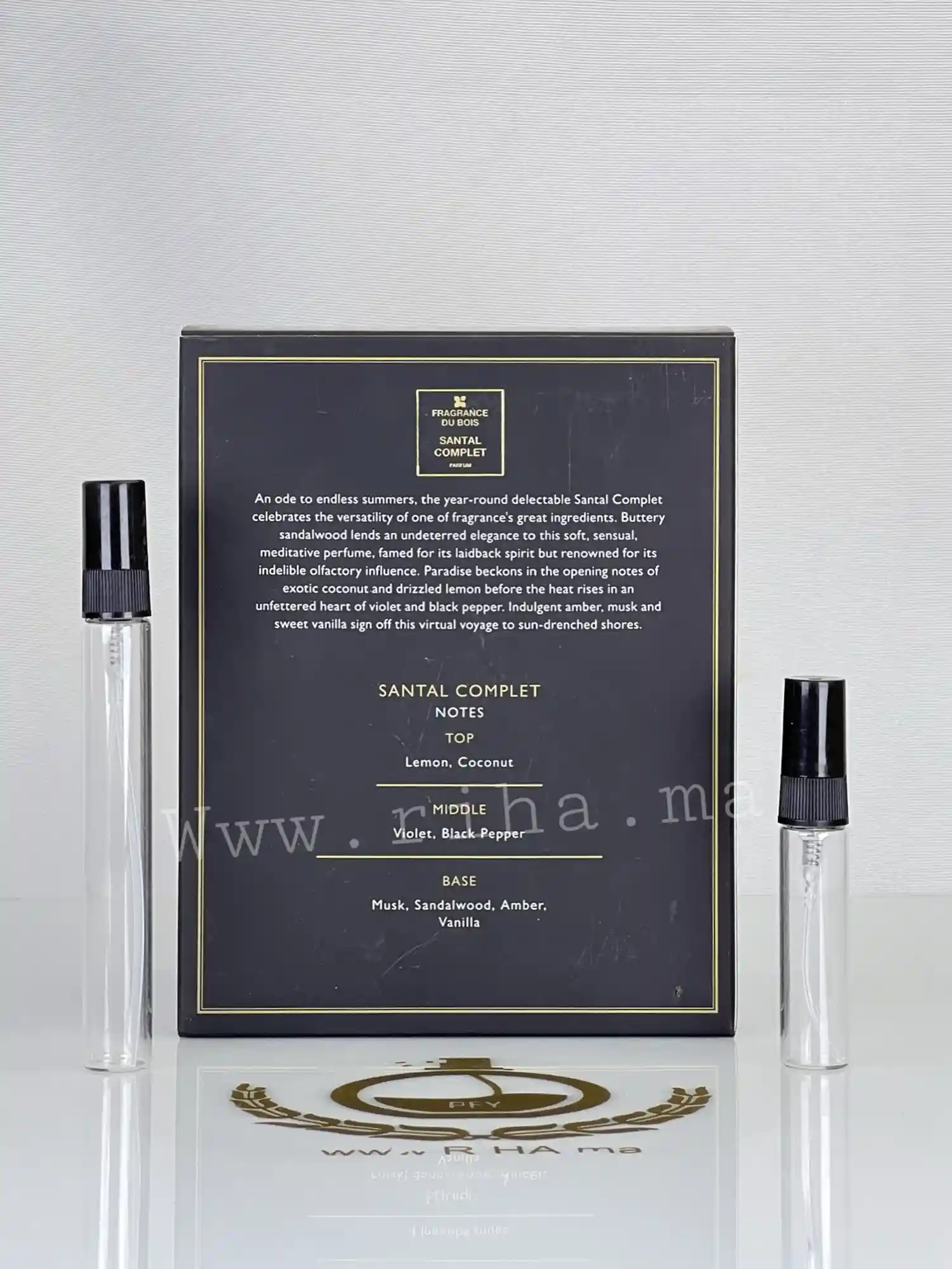Santal Complet de Fragrance Du Bois est un parfum Oriental VanillĂ© pour homme et femme. Santal Complet a Ă©tĂ© lancĂ© en 2016. Les notes de tĂȘte sont Noix de Coco et Citron; les notes de coeur sont Violette et Poivre noir; les notes de fond sont Bois de santal, Vanille, Musc et Ambre.
