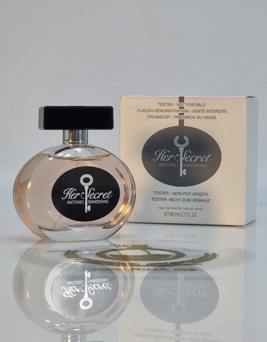 Acheter nouvelle parfum TESTEUR HER SECRETD ANTONIO BANDERAS eau de toilette pour femme  80ml , est un parfum Aromatique Oriental Floral lancé en 2012 , au meilleurs prix chez RIHA la perfumerie en ligne qui vous livre partout au Maroc en 24h.